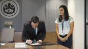 De izquierda a derecha: Pablo Rubén Vernaza, secretario general y María Fernanda Arenas Méndez, directora del Departamento de Gestión de las Organizaciones.